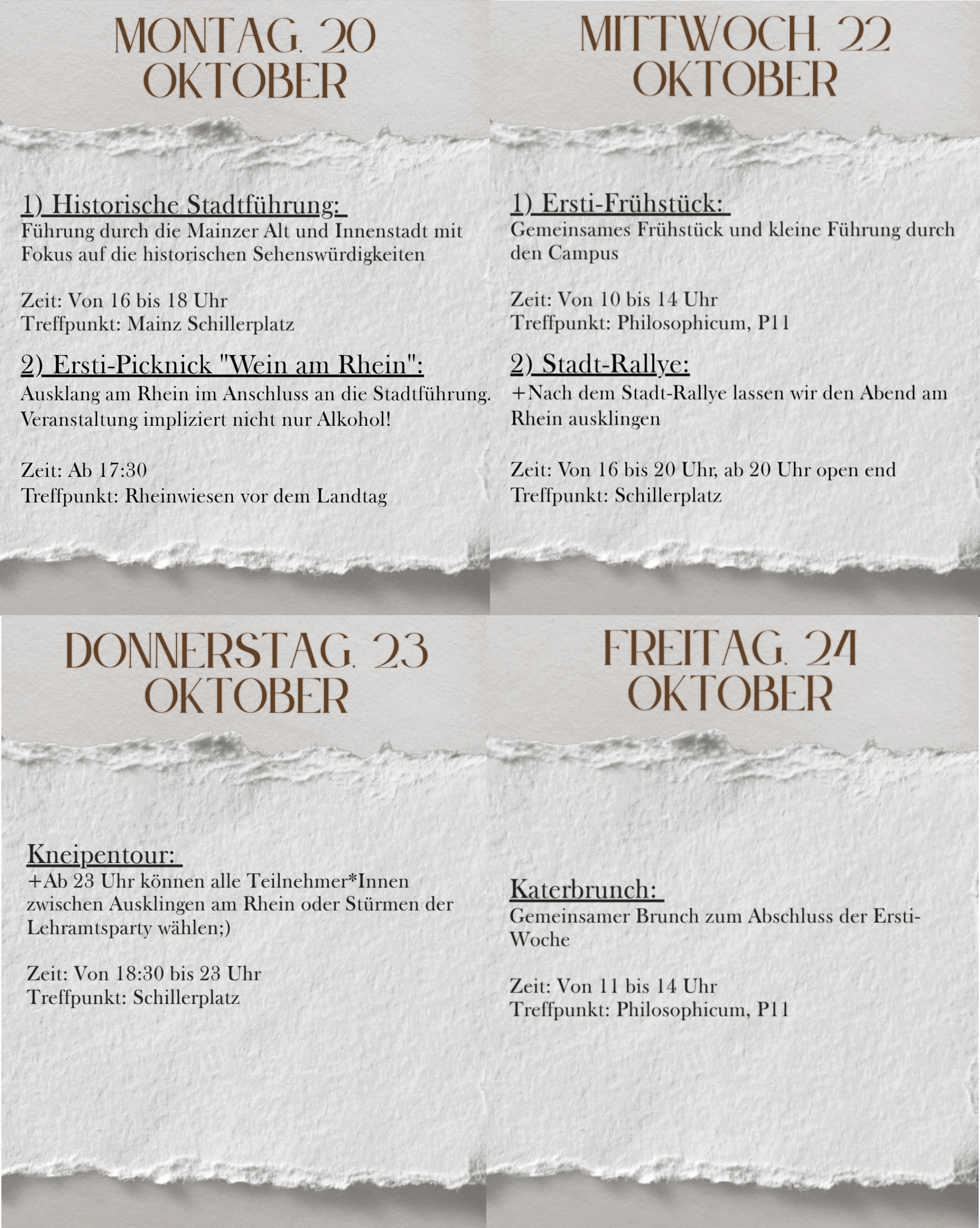 Erstiwoche WiSe 2025Liebe Erstis, die Termine für die Veranstaltungen unserer Erstiwoche findet ihr hier: